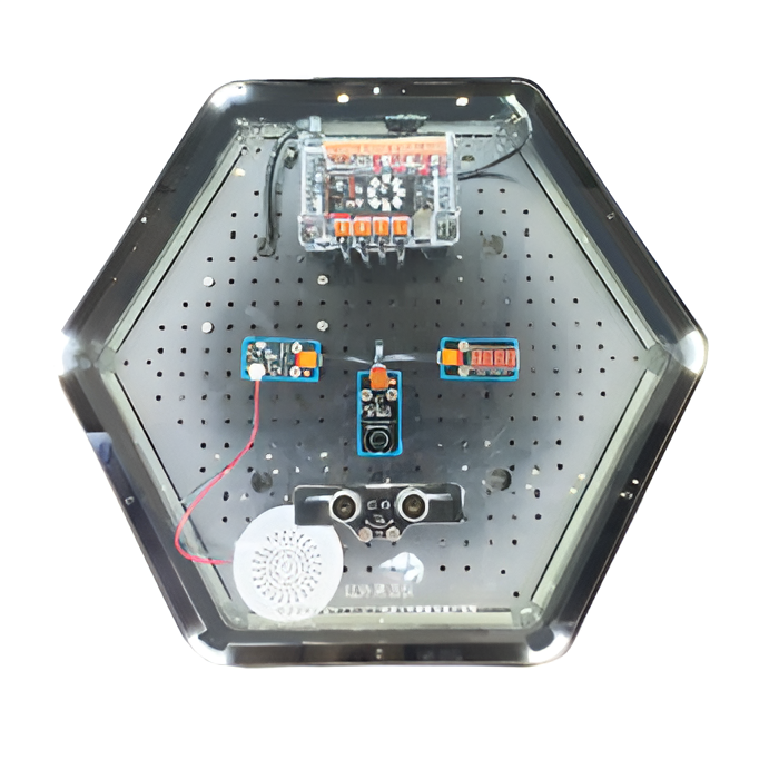 Интерактивный модуль для оформления зон рекреации, кабинетов, IT-полигона, библиотеки, медиа зоны. Модуль позволяет изучить основные принципы работы инфракрасного излучения, взаимосвязь между температурой объекта и инфракрасным излучением. Модуль выполнен в форме шестиугольной призмы с интерактивным наполнением.