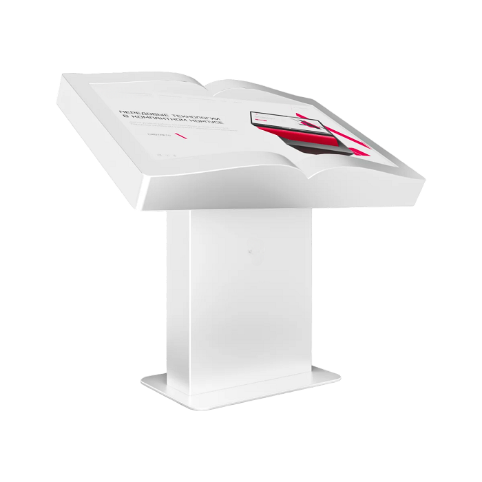 Интерактивный стол Book 32” – устройство, форм-фактор которого реализован в форме раскрытой книги. Механическая регулировка дисплея позволит настроить пользователям оптимальный угол для взаимодействия с программным обеспечением. Оборудование может быть дополнено информационным приложением или интерактивной книгой с эффектом пролистывания страниц.