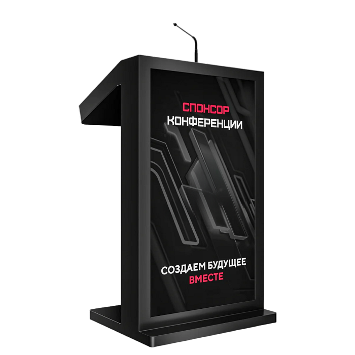 Мультимедийное решение, которое позволяет не только ярко выступить на большую аудиторию, с отображением презентационного материала, но и эффектно продемонстрировать рекламную информацию о компании, предлагаемых товарах / услугах, спикере, на большом внешнем дисплее трибуны. Модель Double 27" оснащена мощным микрофоном, сенсорным дисплеем для спикера, а также большим внешним дисплеем для рекламного контента и набором разъемов для подключения дополнительной техники. Такая трибуна станет прекрасным помощником на конференциях, выставках, спортивных мероприятиях или других мероприятиях, где требуется визуальная поддержка презентаций и общение с аудиторией.
