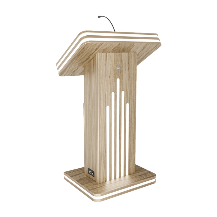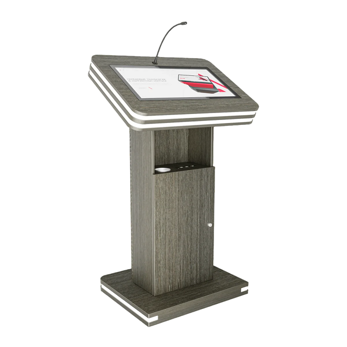 Интерактивная трибуна Light 21,5" — стильная модель, которая украсит любой бизнес-форум и конференцию. Встроенные микрофоны передают звук на большую аудиторию, удобный интерактивный дисплей с мультитач-системой позволяет отображать необходимую информацию не только для спикера, но и для зрителей, передавая ее на большой экран. Помимо этого, в трибуне есть полочка для воды, а также внешние разъемы. Яркий дизайн корпуса со светодиодным узором не сможет оставить никого равнодушным.