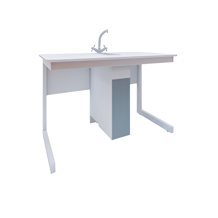 • В центральной части стола располагается мойка, изготовленная из химически устойчивого пластика, размер мойки не менее 300*150*150мм (внутренние размеры 250*100*147мм), к мойке осуществляется подвод воды через смеситель.