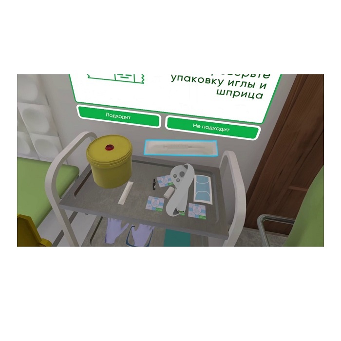 Виртуальный (VR) тренажер «Сестринское дело» позволяет пользователям погрузиться в реалистичную среду клиники и потренироваться в выполнении медицинских процедур по чек-листам, написанным в соответствии с государственными стандартами. Тренажер включает в себя 6 интерактивных сценариев для прохождения обучения по правильному выполнению медицинских процедур и аттестации для оценки полученных навыков в виртуальной реальности.