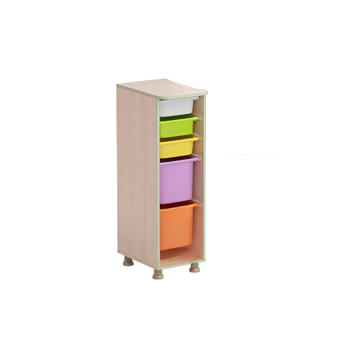 Стеллаж с лотками Робик 001 выполнен из ламинированной ДСП 16 мм, края обрамлены кантом ПВХ 2 мм. Внутреннее пространство стеллажа открыто.