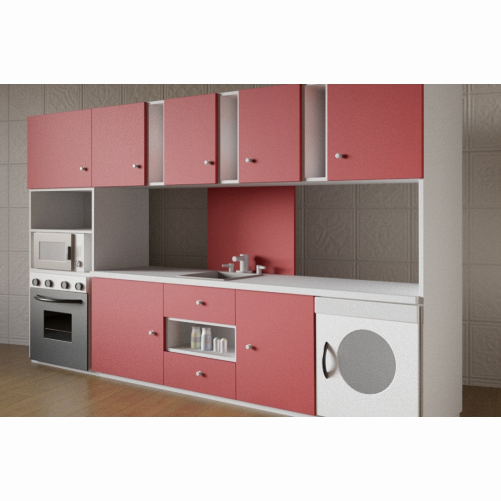 Многочисленные закрытые шкафчики помогут разместить все необходимое для приготовления пищи, а стиральная машина, духовой шкаф, СВЧ-печь и рукомойник со смесителем поможет сделать игру разнообразнее, развивая детское воображение и навыки самообслуживания.