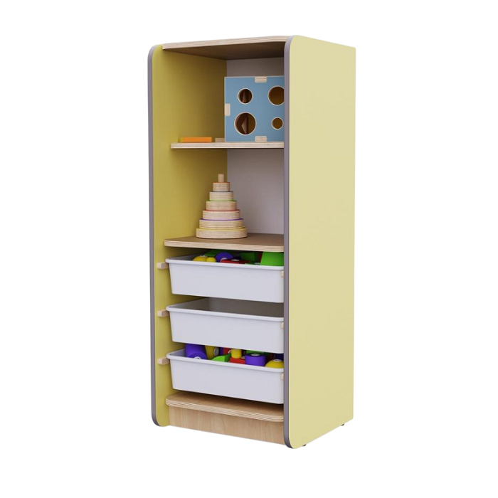 Главная Каталог Подготовительная группа и детский сад Системы хранения Открытый шкаф с ящиками из коллекции мебели «НЕГА» (цвет желтый)