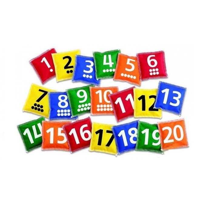 Эти разноцветные мешочки помогут в игровой форме дать и закрепить знания о цифрах (на мешочках от 1 до 10 есть цифра и равное этой цифре количество точек, чтобы их можно было посчитать, на остальных 11-20 точек нет, только цифра).